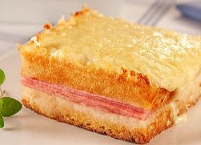 Na receita original do Croque Monsieur, o presunto é cortado em fatias mais grossas e grelhado antes da montagem.