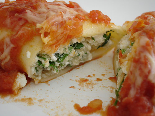 Espalhe o restante do molho de tomate sobre os canelones, salpique com o parmesão extra e leve ao forno por 25-30 minutos ou até que esteja bem aquecido.