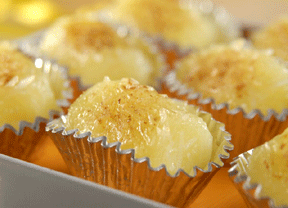 Leve ao forno preaquecido (200ºC) até que forme uma casquinha dourada. Sirva frio em forminhas para doces.
